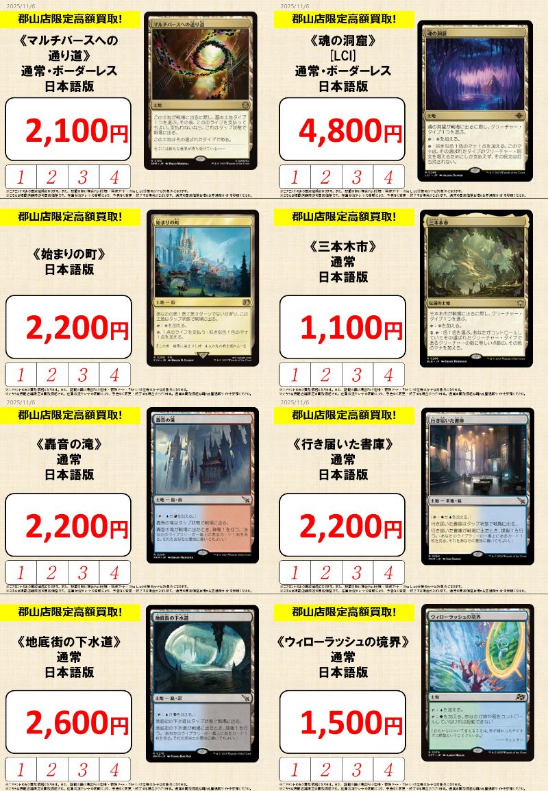 【買取情報】 『晴れる屋 郡山店』限定買取更新しました‼️ 🎯注目のカード🎯 《始まりの町》¥2,200 《三本木市》¥1,100 《地底街の下水道》¥2,600 《ウィローラッシュの境界》¥1,500 使わなくなったカードは『晴れる屋郡山店』までお持ち込みください💪 ご来店お待ちしております❗️