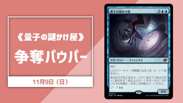 【#晴れ郡イベント】 来週末開催注目イベントは、、、 ✅11/9(日)13:00~『《量子の謎かけ屋》争奪パウパー』 スタンだけでなく多数のフォーマットで活躍中の一枚🎯 ぜひこの機会に手に入れてくださいね🎵 パウパー勢の皆さま、ご参加お待ちしております‼️