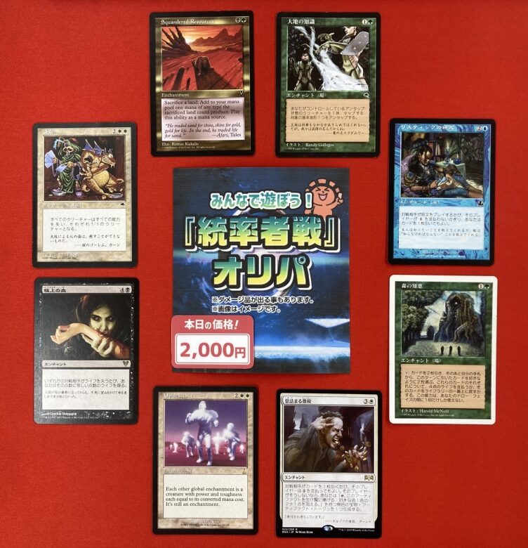 【商品情報】 ⚔️『統率者戦オリパ』2,000円Ver.⚔️ 今回のテーマは”エンチャント”✨ 🎯注目のカード🎯 《資源の浪費》 《大地の知識》 《リスティックの研究》など 統率者で強力なカードをピックアップしました‼️ 皆さまのご来店お待ちしております🙏