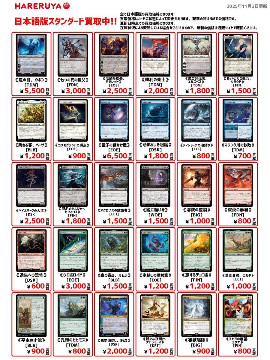 【買取情報】 ✨スタンダード買取募集中✨ 日本語版の買取価格🆙商品はコチラ 《溶鉄の複製》[BIG] ¥1,000 《亭主の才能》[BLB] ¥900 《スピラの希望、ユウナ》[FIN] ¥800 査定は1枚から🆗です👍 ぜひ『晴れる屋郡山店』へお持ち込みください‼️