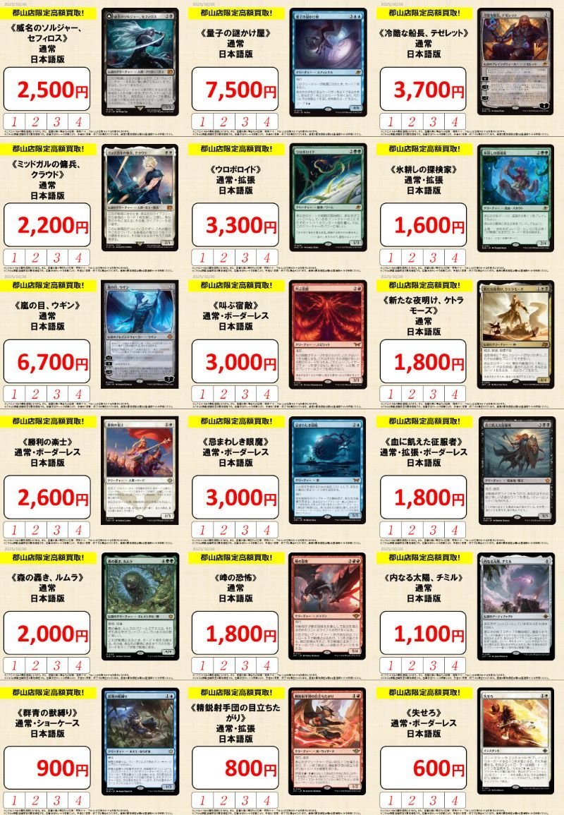 【買取情報】 晴れる屋郡山店限定の買取強化実施中🔥 《威名のソルジャー、セフィロス》¥2,500 《氷耕しの探検家》¥1,600 《嵐の目、ウギン》¥6,700 《忌まわしき眼魔》¥3,000 《森の轟き、ルムラ》¥2,000 ぜひ晴れる屋郡山店にお持ち込みください‼️