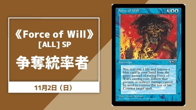 【#晴れ郡イベント】 明日開催注目イベントは、、、 ✅11/2(日)13:00~『《Force of will》[ALL] SP 争奪統率者【ブラケット4以上】』 超強力なカウンターピッチスペルを手に入れるチャンスです‼️ 皆さまのご参加お待ちしております😆