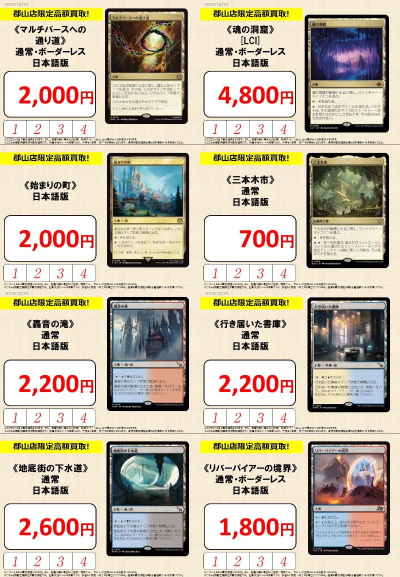 【買取情報】 『晴れる屋 郡山店』限定買取更新しました‼️ 🎯注目のカード🎯 《始まりの町》¥2,000 《三本木市》¥700 《轟音の滝》¥2,200 《リバーパイアーの境界》¥1,800 使わなくなったカードは『晴れる屋郡山店』までお持ち込みください💪 ご来店お待ちしております❗️