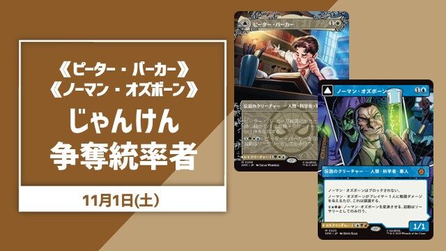 【#晴れ郡イベント】 今週末開催注目イベントは、、、 ✅11/1(土)14:00~『《ピーター・パーカー》《ノーマン・オズボーン》じゃんけん争奪統率者』 スパイダーマンを代表するヒーローとヴィラン‼️ 誰にでも獲得チャンスはありますので、ぜひご参加くださいませ🙇♀️