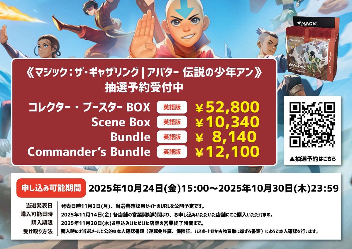 【お知らせ】 《マジック:ザ・ギャザリング | アバター 伝説の少年アン》 英語版各種製品の店頭受取限定抽選予約を開始しました💡 ※お申し込みは全店舗で1回限りとさせていただきます 世界的に人気の英語版をゲットできるチャンス✨ ぜひご応募ください📝