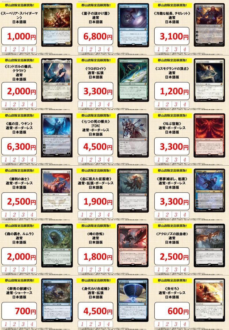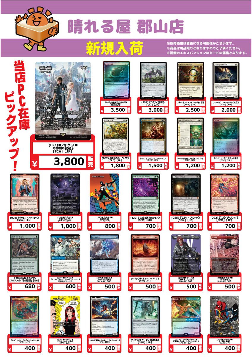 【買取情報】 晴れる屋郡山店限定の買取強化実施中‼️ 《スーペリア・スパイダーマン》¥1,000 《ミッドガルの傭兵、クラウド》¥2,000 《コスモグランドの頂点》¥1,200 《始まりの町》¥1,800 《魂の洞窟》¥5,200 《地底街の下水道》¥3,000 ぜひ晴れる屋郡山店にお持ち込みください✨