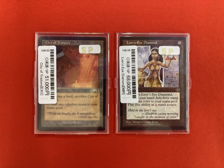 【商品情報】 極コーナーにて高額カード販売中‼️ 🎯今回のオススメ🎯 《裏切り者の都》EN SP ¥51,000 《ライオンの瞳のダイアモンド》EN SP ¥68,000 《モックス・ダイアモンド》JP MP ¥75,000 このほかにも多数ショーケースにて展開中✨ お買い求めの際は晴れる屋郡山店まで🏃♂️💨