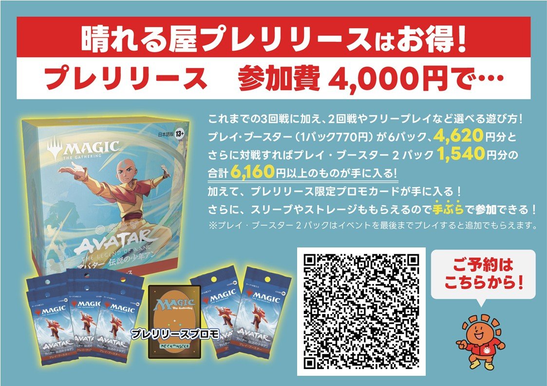 【イベント情報】 『マジック:ザ・ギャザリング | アバター 伝説の少年アン』プレリリース予約受付開始🥳 開催日時:11/14(金)~11/16(日) 参加費:¥4,000 新セットをいち早く遊んでみましょう‼️ ご予約はこちらから🔽
