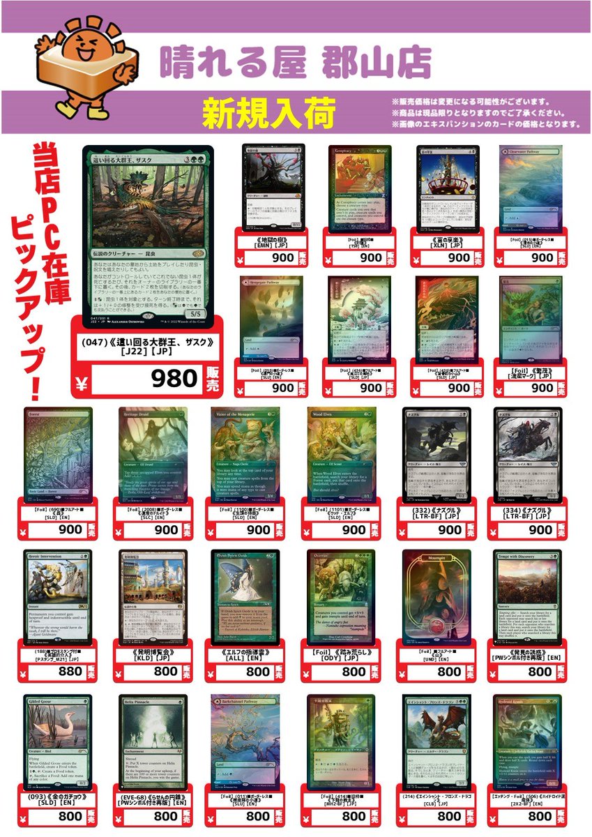 【買取情報】 晴れる屋郡山店限定の買取強化実施中‼️ 《オパールのモックス》¥16,500 《金属モックス》¥8,400 《海門修復》JP ¥3,500/EN ¥4,200 《地底街の下水道》¥3,000 《迷路庭園》¥2,200 1枚からでもじゃんじゃんお持ち込みください💪 ご来店お待ちしております😆