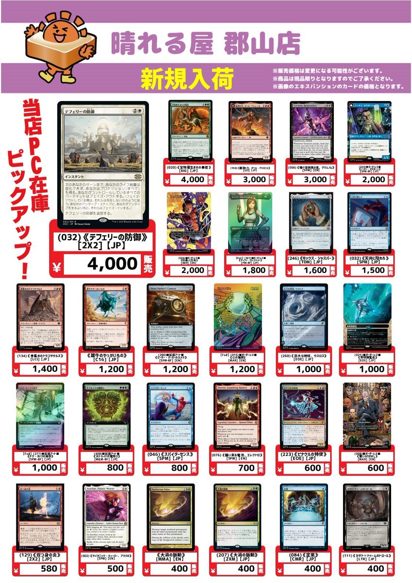 【商品情報】 PC注文在庫にカードを追加しました‼️ 注目カードピックアップ🎯 《テフェリーの防御》4,000円 《雄牛のやっかいもの》1,200円 《スパイダーセンス》800円 《ピナクルの特使》600円 ご注文はこちらから🔽