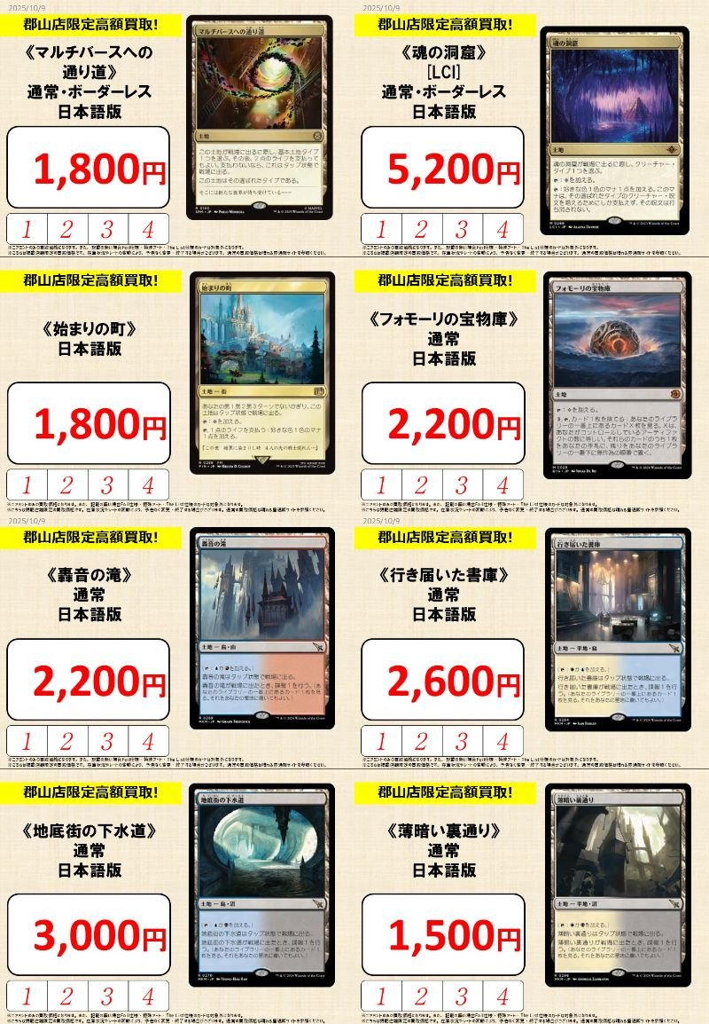 【買取情報】 『晴れる屋 郡山店』限定買取更新しました‼️ 🎯注目のカード🎯 《魂の洞窟》¥5,200 《始まりの町》¥1,800 《フォモーリの宝物庫》¥2,200 《轟音の滝》¥2,200 使わなくなったカードは『晴れる屋郡山店』までお持ち込みください💪 ご来店お待ちしております❗️