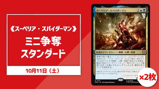 【#晴れ郡イベント】 今週末開催注目イベントは、、、 ✅10/11(土)・10/12(日)17:00~ 《スーペリア・スパイダーマン》ミニ争奪スタンダード 最近注目のカードが手に入る新形式のイベントです✨ ぜひ皆さまご参加ください‼️🙇♀️