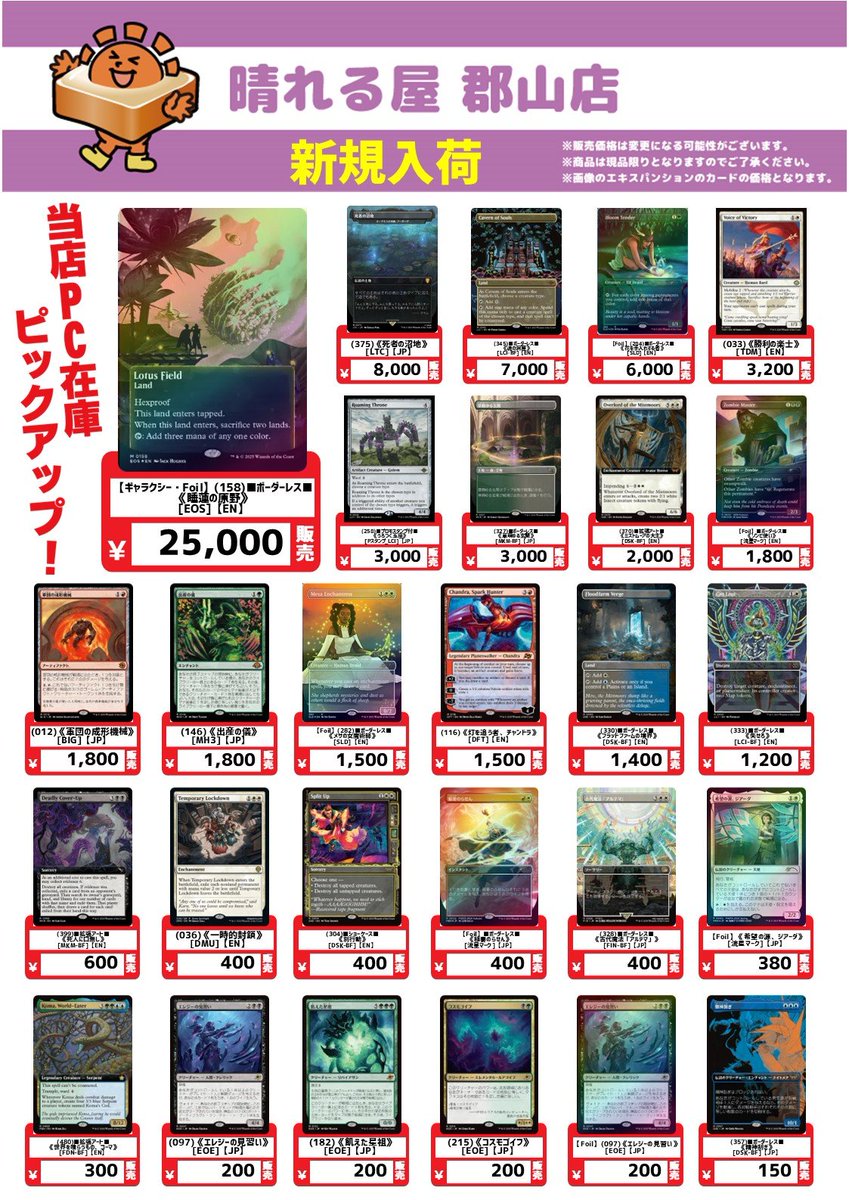 【店舗情報】 いらっしゃいませ☀️ 晴れる屋郡山店オープンしました‼️ ✨注目イベント✨ 1⃣THE LAST SUN 2025 スタンダード予選 2⃣Let’s 5 ミドルスクール 3⃣SPM コマンダーパーティー 詳細はこちら🔽 皆さまのご来店お待ちしております