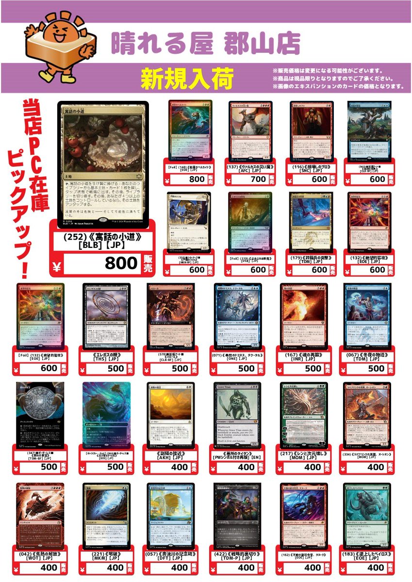 【店舗情報】 いらっしゃいませ☀️ 晴れる屋郡山店オープンしました‼️ ✨注目イベント✨ 1⃣争奪パウパー 2⃣『FINAL FANTASY』限定構築戦:統率者戦 3⃣SPM コマンダーパーティー 詳細はこちら🔽 皆さまのご来店お待ちしております🙇