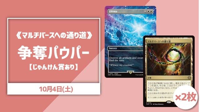 【#晴れ郡イベント】 ✨本日開催の注目イベント✨ ✅13:00~『《マルチバースへの通り道》争奪パウパー【じゃんけん賞あり】』 🏆優勝賞品🏆 《マルチバースへの通り道》×2枚 ✊じゃんけん賞✊ 《古代魔法「アルテマ」》 ⚠️最少催行人数:8名 ご参加お待ちしております‼️😆
