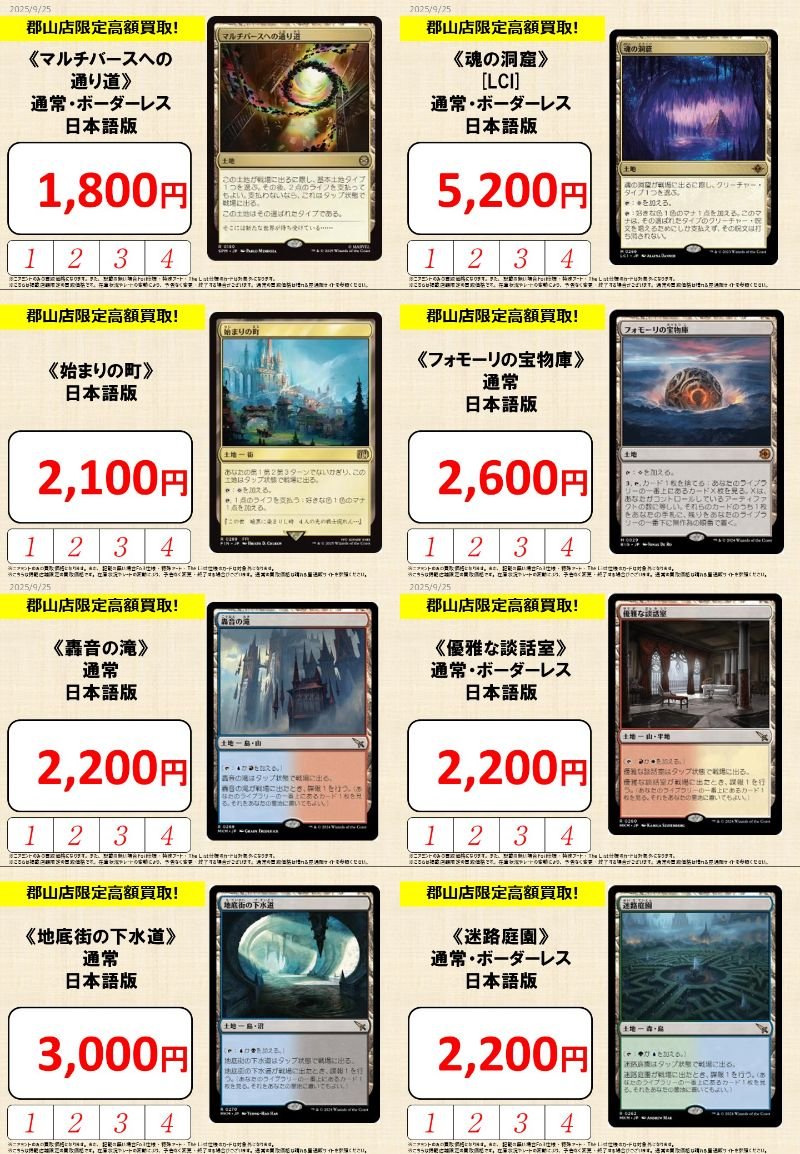 【買取情報】 『晴れる屋 郡山店』限定買取更新しました‼️ 🎯注目のカード🎯 《マルチバースへの通り道》¥1,800 《始まりの町》¥2,100 《魂の洞窟》¥5,200 《フォモーリの宝物庫》¥2,600 スタンダードの土地カードを募集中‼️ 晴れる屋郡山店にてお待ちしています🙇♂️