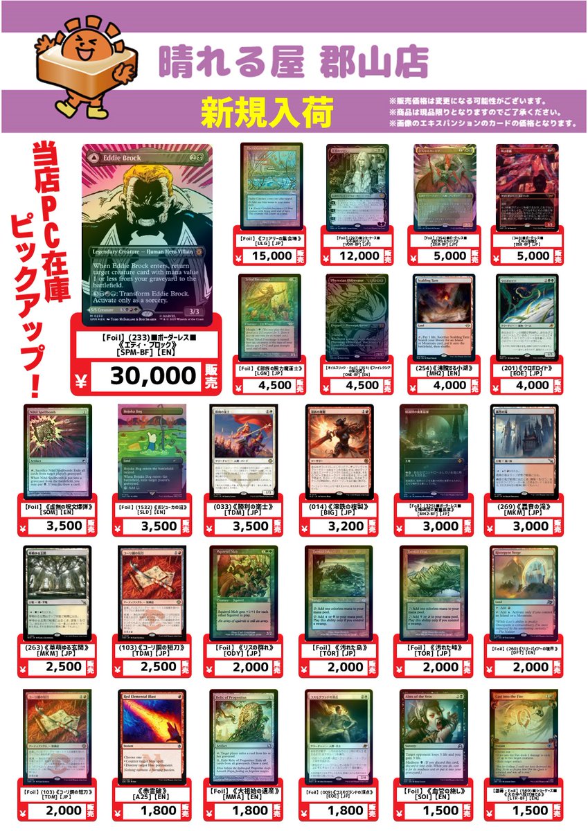【店舗情報】 本日も晴れる屋郡山店にご来店いただき ありがとうございました‼️ 9/25(木)は14時オープン☀️ ✨注目イベント✨ 1⃣木曜ブースタードラフト 2⃣平日デイリースタンダード 🔥週末イベント🔥 1⃣争奪スタンダード 2⃣争奪パイオニア 3⃣KCG 詳細はこちら🔽