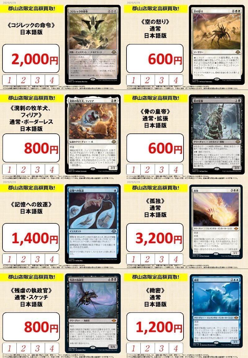 【買取情報】 『晴れる屋 郡山店』限定で買取募集中です‼️ 🎯注目のカード🎯 《コジレックの命令》¥2,000 《残虐の執政官》¥800 《記憶への放逐》¥1,400 《孤独》¥3,200 スリーブ抜きやソートは不要です🙌 お気軽にお持ち込みください☺️