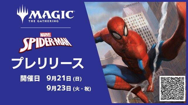 【#晴れ郡イベント】 「マジック:ザ・ギャザリング | マーベル スパイダーマン」プレリリース&自宅でプレリリース開催中‼️ 9/23(火・祝)が店舗開催最終日💦 お得に参加できるのでお見逃しなく💨 プレリリースイベントの予約はこちら🔽 皆様のご来店お待ちしております🙏