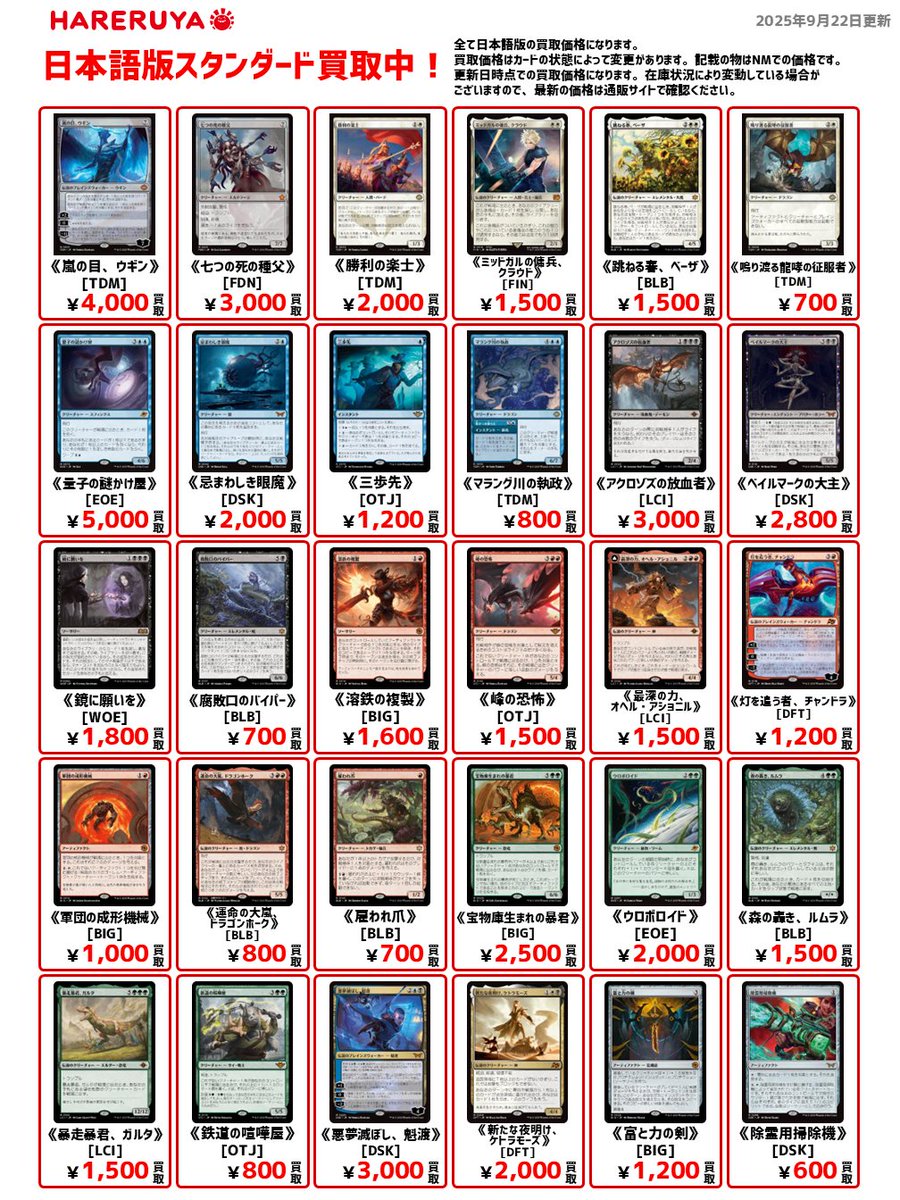 【買取情報】 🔥スタンダード買取募集中🔥 日本語版買取参考価格はコチラ🔽 《量子の謎かけ屋》[EOE] ¥5,000 《嵐の目、ウギン》[TDM] ¥4,000 《勝利の楽士》[TDM] ¥2,000 《ウロボロイド》[EOE] ¥2,000 1枚だけでも買取査定🆗です👍 郡山でMTGのことなら ✅アティ郡山8F『晴れる屋郡山店』へ‼️