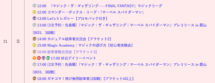【#今日の晴れ郡】 『「マジック:ザ・ギャザリング | マーベル スパイダーマン」プレリリース』 事前予約で抽選に参加できるFFポスターもあと1⃣種、9/21(日)分のみとなりました😭 店頭告知用の美麗なポスターが手に入るラストチャンス‼️皆さまどうかお見逃しなく~~💨💦