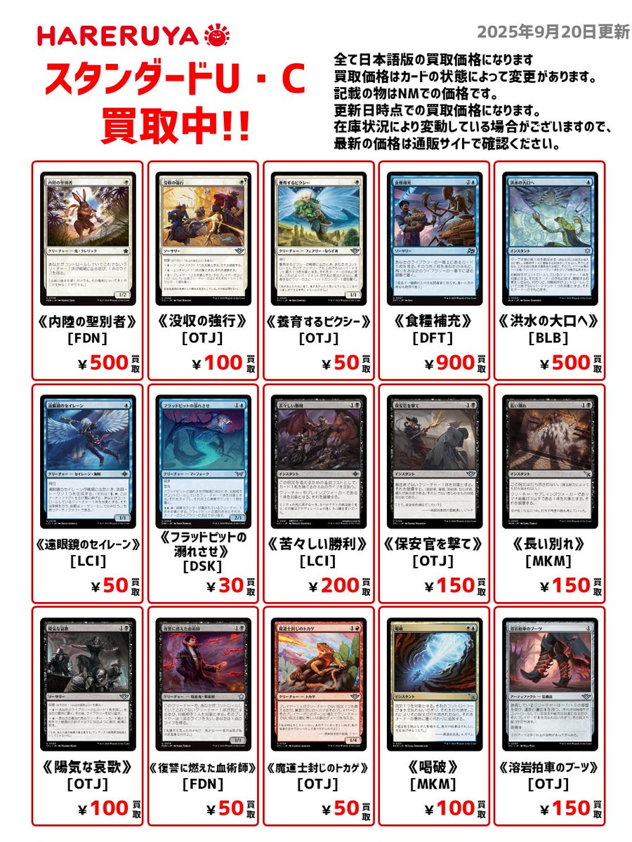 【買取情報】 ✅スタンダードUC・C買取募集中 日本語版買取参考価格はコチラ🔽 《食糧補充》[DFT] ¥900 《洪水の大口へ》[BLB] ¥500 《苦々しい勝利》[LCI] ¥200 《保安官を撃て》[OTJ] ¥150 《長い別れ》[MKM] ¥150 1⃣枚からでも大歓迎です✨ 皆さまのご来店・お持ち込み、お待ちしております🎵