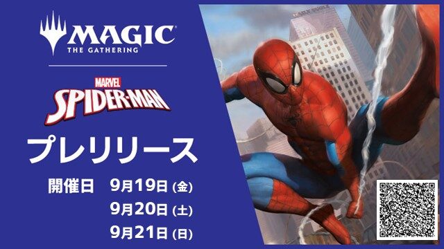【商品情報】 『マジック:ザ・ギャザリング | マーベル スパイダーマン』プレイブースターBOX予約受付中‼️ ✨9/19(金)先行販売開始✨ 本日受付最終日です💦 明日から購入したい方は今すぐご予約を💨 ⏰期限:2025年9月18日23時59分 ご予約は画像QRコードor下記リンク🔽
