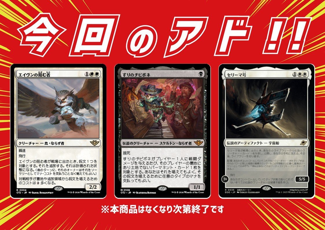 【#晴れ郡商品情報】 「アドクレーン」新ロット追加しました‼️😄 今回のアドはこちら🔽 《すりのチビボネ》💀 《エイヴンの阻む者》🦅 《セリーマ号》🚀 晴れる屋郡山店にお越しの際は、1回1⃣0⃣0⃣円でレッツチャレンジ🎵 ブースターパックなどもたっぷり入っていて狙い目ですよ😎