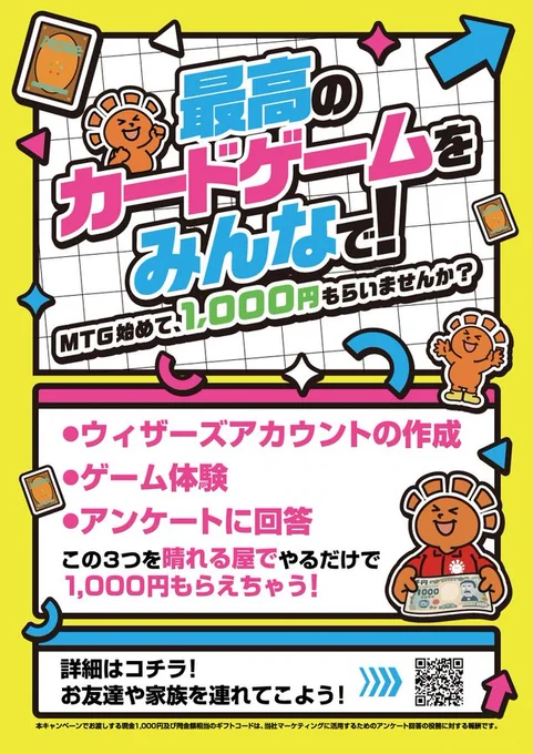 【#晴れ郡イベント】 ☀️最高のカードゲームをみんなで☀️ 〜MTGはじめて、1000円もらいませんか?〜 ゲームを始めるだけで1000円⁉️😱 晴れる屋だからできるビッグウェーブ、乗るしかないッ🌊🌊 ✅アティ郡山8階『晴れる屋 郡山店』 でお待ちしております‼️🙇♂️ 詳細はこちら🔽 hareruyamtg.com/ja/user_data…