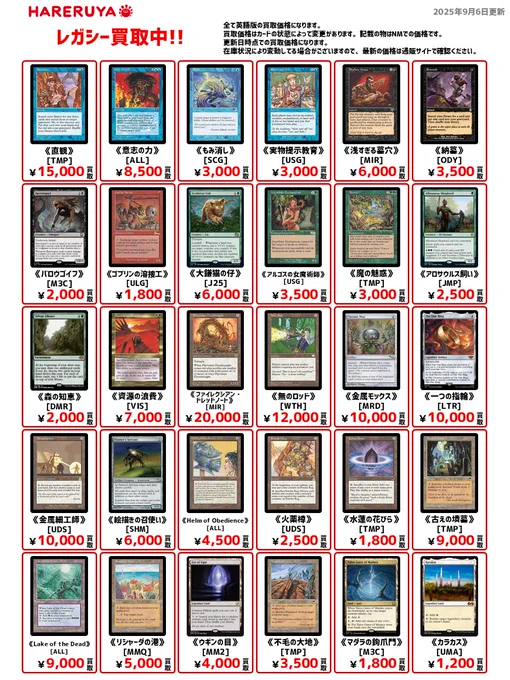【買取情報】 🏛️レガシーの買取募集中🏛️ 英語版参考価格はコチラ🔽 《金属細工師》[UDS] ¥10,000🆙 《資源の浪費》[VIS] ¥7,000🆙 《実物提示教育》[USG] ¥3,000🆙 《魔の魅惑》[TMP] ¥3,000🆙 《アロサウルス飼い》[JMP] ¥2,500🆙 1⃣枚からでも大歓迎です‼️ 皆さまのご来店お待ちしております🙏