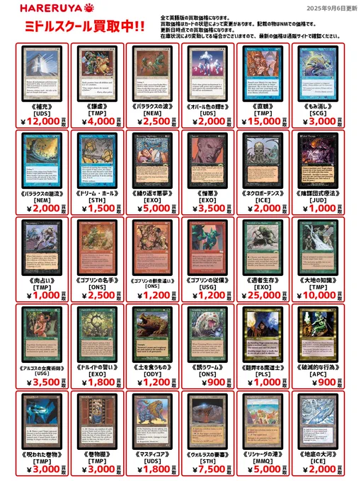 【買取情報】 ✨ミドルスクール買取募集中✨ 🔽英語版参考価格はコチラ 《適者生存》[EXO] ¥25,000 《補充》[UDS] ¥12,000 《大地の知識》[TMP] ¥10,000 《繰り返す悪夢》[EXO] ¥5,000 《巻物棚》[TMP] ¥3,000🆙 《肉占い》[TMP] ¥1,000🆙 大量持ち込み大歓迎です‼️ ご来店お待ちしております🙇♀️