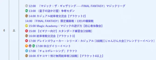 【#今日の晴れ郡】 14時開催 1⃣『FINAL FANTASY』限定構築戦:1対1の構築戦 2⃣カジュアル統率者交流会 計8名様でスタートしました‼️ お集まりいただきありがとうございます🙇 🏆賞品一覧🏆 1⃣じゃんけん賞:プレイマット 2⃣勝利者賞:プロモパック 皆さん最後までお楽しみください🎵