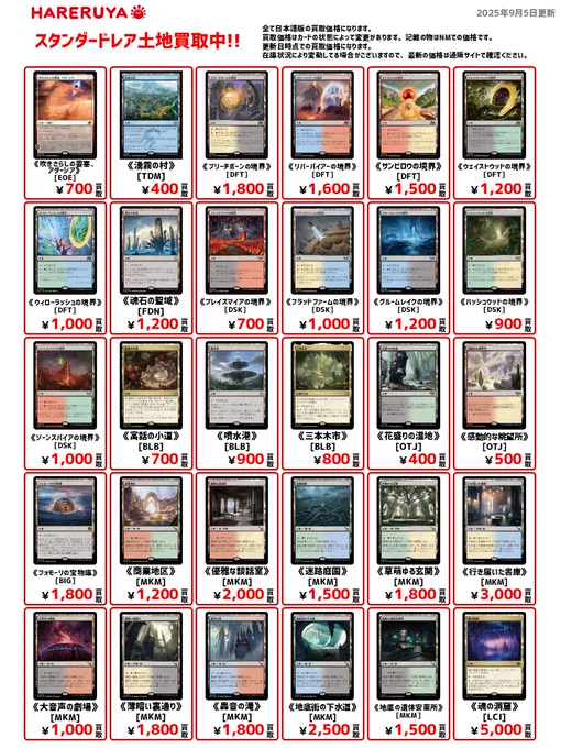 【買取情報】 🏝️スタンダードのレア土地買取募集中🏝️ 日本語・通常版の参考価格はこちら🔽 《魂の洞窟》[LCI] ¥5,000 《行き届いた書庫》[MKM] ¥3,000 《魂石の聖域》[FDN] ¥1,200 《ウィローラッシュの境界》[DFT] ¥1,000🆙 買取は1⃣枚からでもOKです👌 皆さんのお持ち込み、お待ちしております🙇