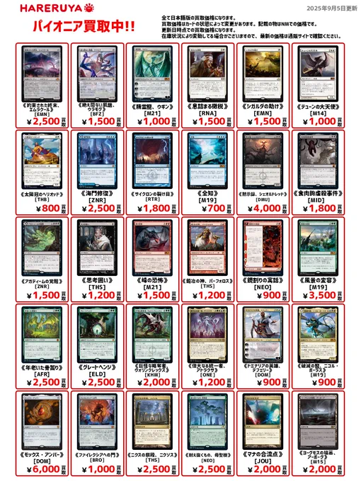 【買取情報】 ✨パイオニアフォーマット買取募集中✨ 日本語版参考価格はこちら🔽 《モックス・アンバー》[DOM] ¥6,000 《風景の変容》[M19] ¥3,500 《海門修復》[ZNR] ¥2,500 《シガルダの助け》[EMN] ¥1,500 《鏡割りの寓話》[NEO] ¥900 1枚から買取🆗です🙆♂️ ご来店お待ちしております🙏