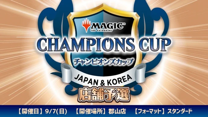 【#晴れ郡イベント】 9/7(日)13:00~ ✅『チャンピオンズカップ店舗予選』 🏆賞品一覧🏆 上位賞:《笑う者、ジャスパー・フリント》🦎 参加賞:《保安官を撃て》🤠 ⚠️1試合目開始までに、リンク先からデッキリストをご提出ください hareruyamtg.com/ja/events/48… 皆様のご参加お待ちしております‼️🙏