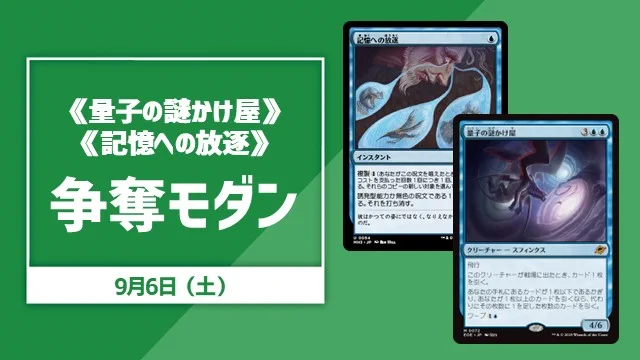 【#晴れ郡イベント】 今週末開催注目イベントは、、、 ✅9/6(土)13:00~《量子の謎かけ屋》争奪モダン 《儚い存在》などのブリンクと相性抜群の1枚✨ モダンのサイドボード御用達の《記憶への放逐》も付きますよ❗️ ご参加お待ちしております🙇♂️