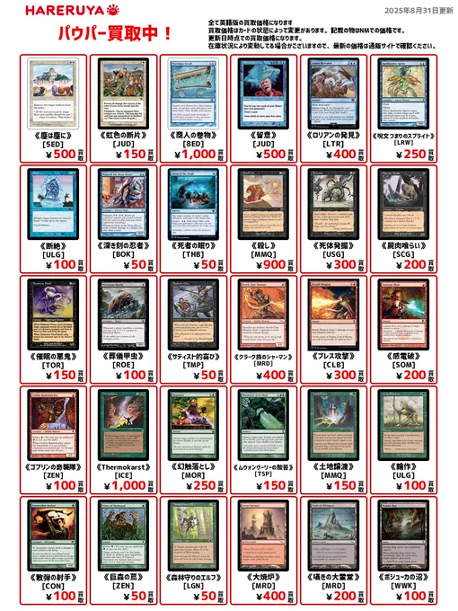 【買取情報】 ⚡️パウパー買取募集中‼️⚡️ 🔽英語版の参考価格はコチラ🔽 《商人の巻物》[8ED] ¥1,000 《クラーク族のシャーマン》[MRD] ¥400 《屍肉喰らい》[SCG] ¥200🆙 《感電破》[SOM] ¥200🆙 《散弾の射手》[CON] ¥100 1枚からでも査定🆗です🎵 皆さまのご来店お待ちしております😁