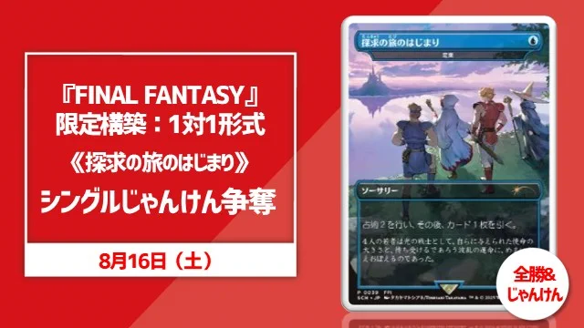 【#晴れ郡イベント】 明後日開催注目イベントは、、、 ✅8/31(日)13:00~ 『FINAL FANTASY』限定構築:1対1形式《探求の旅のはじまり》争奪戦 優勝者だけでなく、じゃんけん賞でもチャンスがありますよ🎵 皆さまのご参加お待ちしております‼️🙇♂️