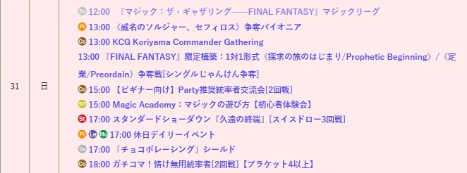 【店舗情報】 本日も晴れる屋郡山店にご来店いただき ありがとうございました‼️ 8/31(日)は12時オープン☀️ ✨注目イベント✨ 1⃣KCG Koriyama Commander Gathering 2⃣《威名のソルジャー、セフィロス》争奪パイオニア 3⃣FF限定構築:1対1形式じゃんけん争奪 詳細はこちら🔽
