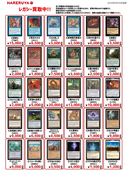【買取情報】 🏛️レガシーの買取募集中🏛️ 英語版参考価格はコチラ🔽 《直観》[TMP] ¥15,000 《一つの指輪》[LTR] ¥10,000 《意志の力》[ALL] ¥8,500 《ウギンの目》[MM2] ¥4,000🆙 《水蓮の花びら》[TMP] ¥1,800 1枚からでも査定大歓迎です‼️ 皆さまのご来店お待ちしております😆