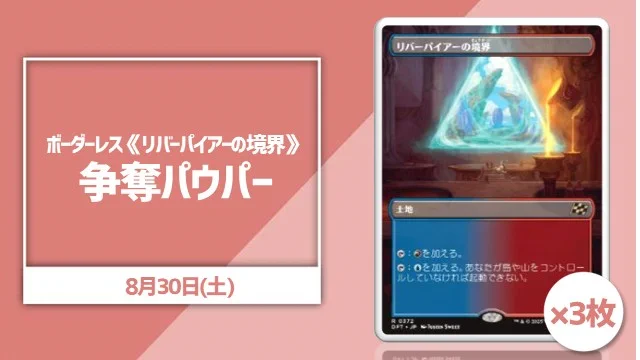 【#晴れ郡イベント】 今週末開催注目イベントは、、、 ✅8/30(土)13:00~《 ボーダーレス版《リバーパイアーの境界》争奪パウパー スタンダードで青赤をやるなら必須の境界ランド⛰️ ぜひこの機会に手に入れてくださいね🎵 皆さまのご参加お待ちしております🙇