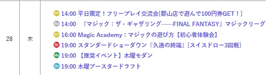 【店舗情報】 本日も晴れる屋郡山店にご来店いただき ありがとうございました‼️ 8/28(木)は14時オープン☀️ ✨注目イベント✨ 1⃣スタンダードショーダウン 2⃣木曜ブースタードラフト 3⃣木曜モダン 詳細はこちら🔽 hareruyamtg.com/ja/events/ 8/28(木)もご来店お待ちしております😆