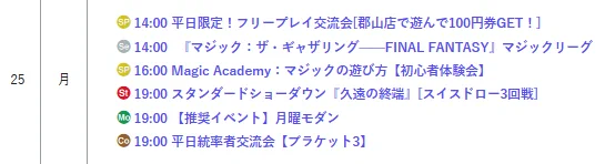 【店舗情報】 本日も晴れる屋郡山店にご来店いただき ありがとうございました‼️ 8/25(月)は14時オープン☀️ ご来店お待ちしております😆 ✨注目イベント✨ 1⃣スタンダードショーダウン 2⃣月曜モダン 🔥週末イベント🔥 1⃣チャンピオンズカップ店舗予選 2⃣KCG 詳細はこちら🔽 hareruyamtg.com/ja/events/?sho…