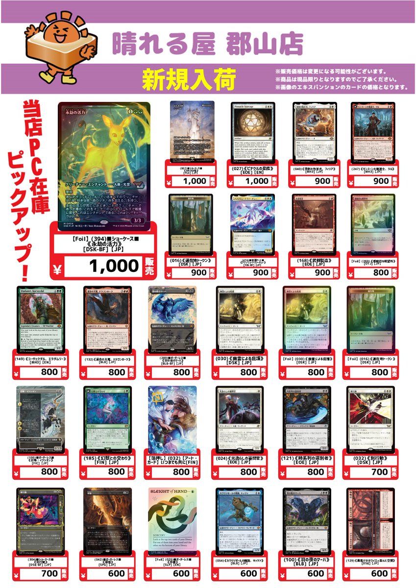 【店舗情報】 おはようございます☀️ 晴れる屋郡山店本日12時オープンです‼️ 開催イベント一覧🔽 hareruyamtg.com/ja/events/ ✨本日の注目イベント✨ 1⃣郡山統率者祭り 2⃣THE LAST SUN 2025 スタンダード予選 本日も皆様のご来店お待ちしております🙏