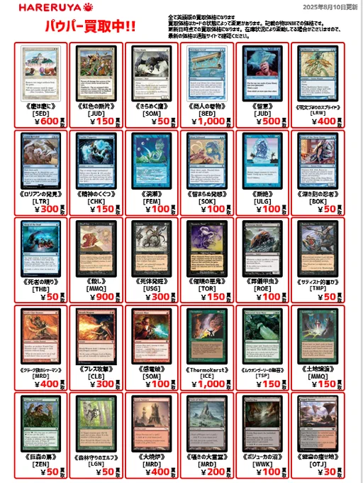 【買取情報】 🦅パウパーの買取募集中です🦅 🔽英語版の参考価格はコチラ🔽 《商人の巻物》[8ED] ¥1,000 《Thermokarst》[ICE] ¥1,000 《ロリアンの発見》[LTR] ¥300 《精神のくぐつ》[CHK] ¥150 1枚からでも査定いたします✨ ✅アティ郡山8F『晴れる屋郡山店』 までぜひお越しください‼️