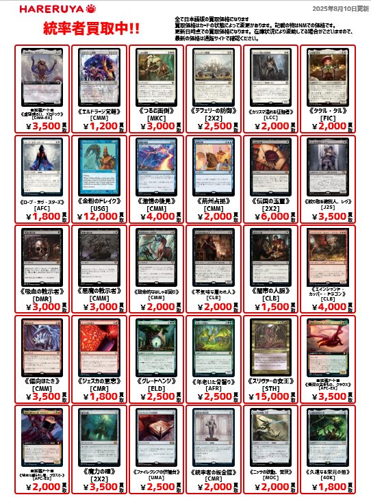 【買取情報】 👑統率者買取募集中👑 《金粉のドレイク》[USG] ¥12,000 《伝国の玉璽》[2X2] ¥6,000 《偏向はたき》[CMM] ¥3,500 《吸血の教示者》[DMR] ¥3,000 《悪魔の教示者》[CMM] ¥3,000 買取キャンペーンも合わせてご確認くださいね😎 お気軽にお持ち込みください🎵