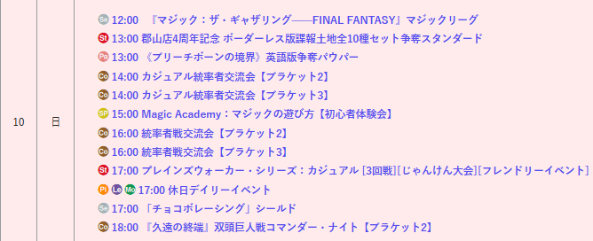 【店舗情報】 本日も晴れる屋郡山店にご来店いただき ありがとうございました‼️ 8/10(日)は12時オープンです☀️ ✨注目イベント✨ 1⃣郡山店4周年記念 争奪スタンダード 2⃣《ブリーチボーンの境界》英語版争奪パウパー 明日もご来店お待ちしております🙇♂️ 詳細はこちら🔽 hareruyamtg.com/ja/events/