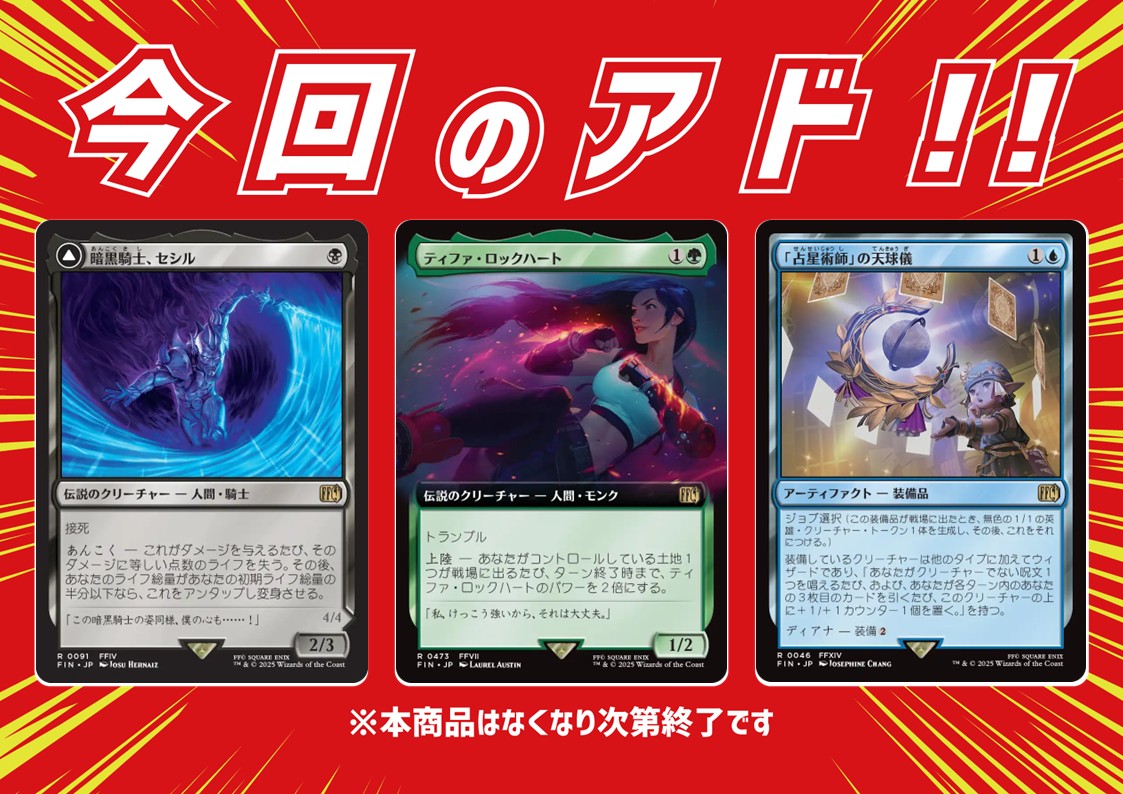 【#晴れ郡商品情報】 「アドクレーン」新ロット追加‼️ 今回のアドはこちら🔽 《暗黒騎士、セシル》🗡️ 《ティファ・ロックハート》✊ 《「占星術師」の天球儀》🌐 1回1⃣0⃣0⃣円でレッツチャレンジ💪 パックやレア詰め合わせもありますよ🎵 ご来店の際は、ぜひ覗いてみてくださいね👀