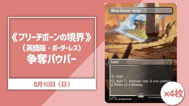 【#晴れ郡イベント】 明日開催注目イベントは、 8/10(日)13:00~ 《ブリーチボーンの境界》英語版争奪パウパー hareruyamtg.com/ja/events/4637… スタンダードで人気の境界土地が1度で4枚揃うチャンス🤩 絵柄も綺麗なので集めておきたいカードですね✨ ご参加お待ちしております‼️