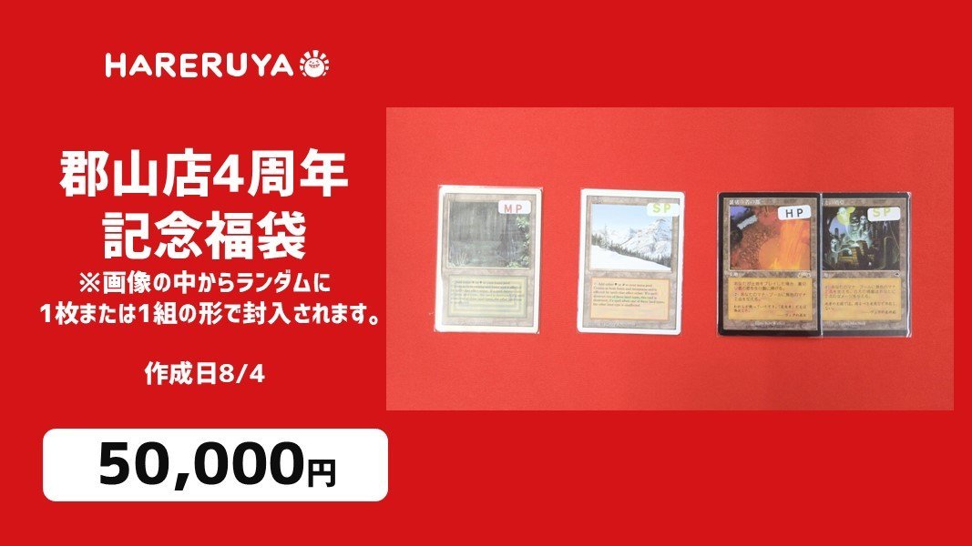 【#晴れる屋郡山店4周年記念】 ㊗️『晴れる屋郡山店4周年記念福袋』発売中です㊗️ 5万円ver. 3万円ver. 1万円ver. の3種類をご用意しております‼️ シングルカードの他にもサプライやパックもパンパンに詰まっております💥 もちろん福袋でもスクラッチに挑戦できますのでぜひご来店ください🍀